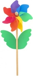 Színes kerti szélforgó, fából és műanyagból, 15 cm átmérő, 38 cm magasság