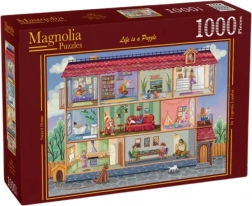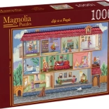 Fedezze fel a nyugalmat és a harmóniát a Magnolia stílusos, „Otthon, édes otthon” motívumú puzzlével. A 1000 precízen vágott darabnak köszönhetően az összeállítás kellemes kihívás kezdőknek és tapasztalt kirakórajongóknak egyaránt. Ideális egy fárasztó nap utáni relaxációhoz, közös családi pillanatokhoz, és befejezés után elegáns dekorációként.