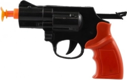 A narancssárga heggyel ellátott műanyag pisztoly ideális a kis kezekbe – könnyen fogható, kezelhető, és jól elfér a hátizsákban.