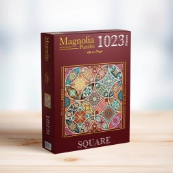 Ez a minőségi, mandalamotívumos kirakó harmonikus dizájnt és kellemes kihívást nyújt kezdőknek és haladóknak egyaránt. A 1023 darabbal relaxáló tevékenységet kap, amely fejleszti a türelmet, a részletekre való odafigyelést és a finommotorikát. Összeállítás után egy körülbelül 60 × 60 cm-es, mutatós kép születik, amely kiállítva is remekül mutat.
