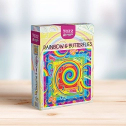 Színes puzzle szivárvánnyal és pillangókkal pihentetést és kihívást is nyújt az egész családnak. A 1023 darabbal és kb. 60 × 60 cm mérettel gyönyörű, részletgazdag képet állíthatsz össze, amely örömet szerez a természet- és kirakókedvelőknek.