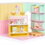 Az összeszerelés gyors és szórakoztató: helyezd le a járólapokat, rögzítsd a falakat és paneleket, rendezd el a polcokat, és dekoráld kiegészítőkkel. A készletek egymással kompatibilisek, és kombinálhatók a népszerű Hello Kitty készlettel is a még nagyobb kiállítófelületért és variálhatóságért.