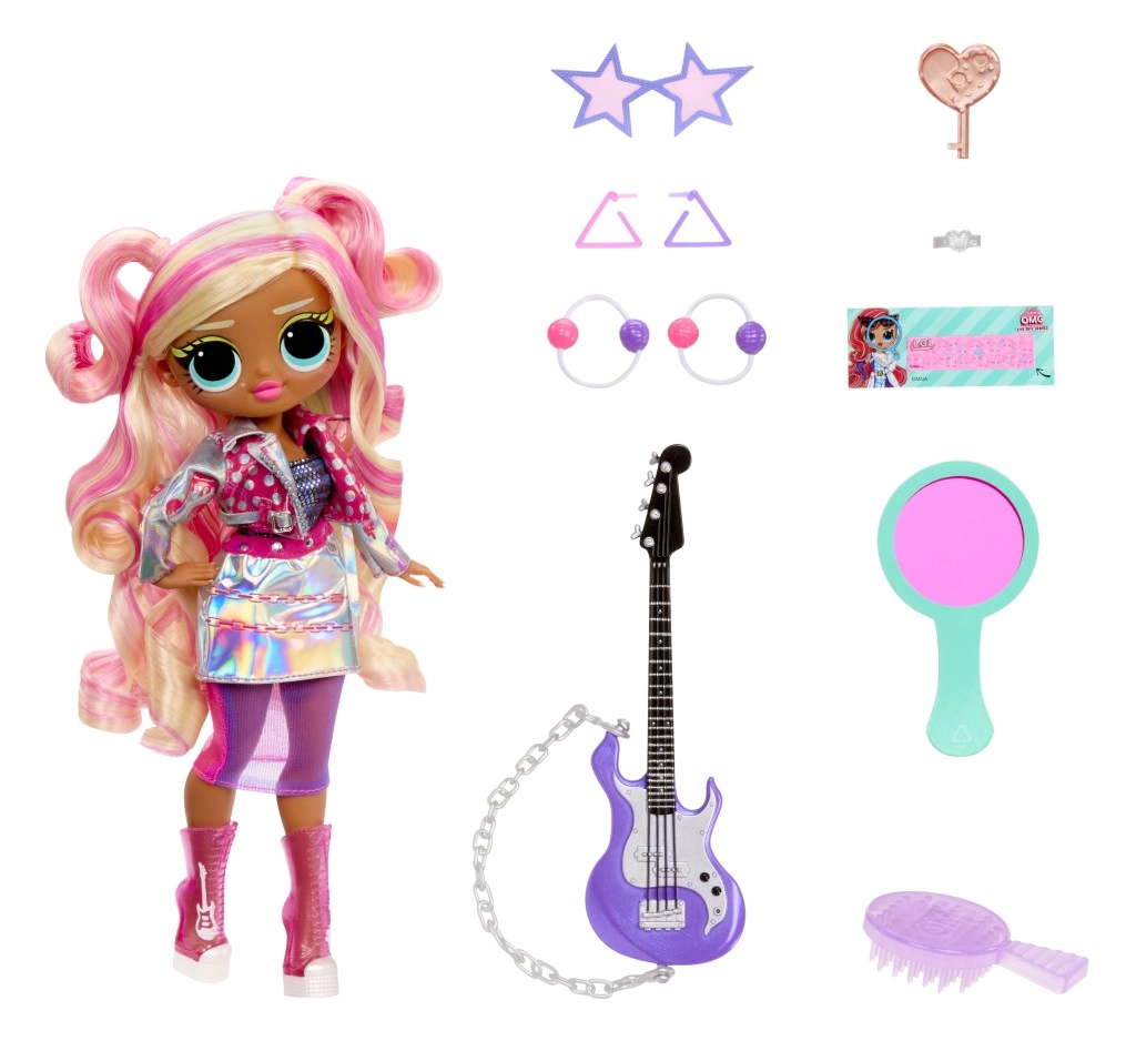 A babának részletgazdag öltözéke, ízületes végtagjai vannak a pózoláshoz, és gazdag tartozékkészlete, beleértve az elektromos gitárt, ékszereket és a hajkefét. Két megjelenés egyben és több mint 15 meglepetés biztosít órákon át tartó kreatív játékot, gyűjtést és kiállítást.