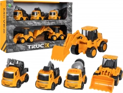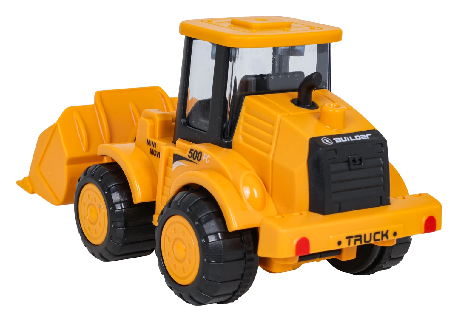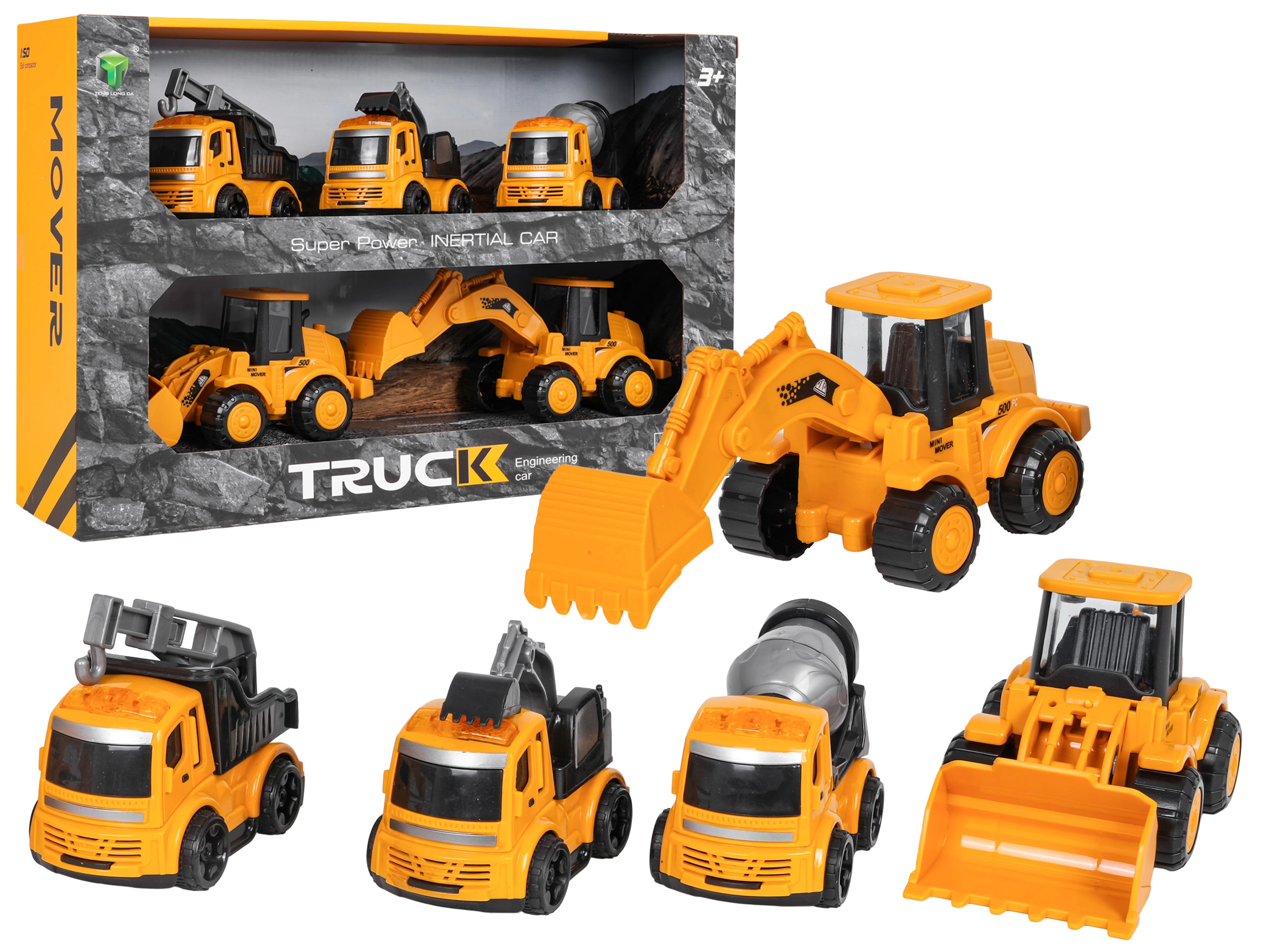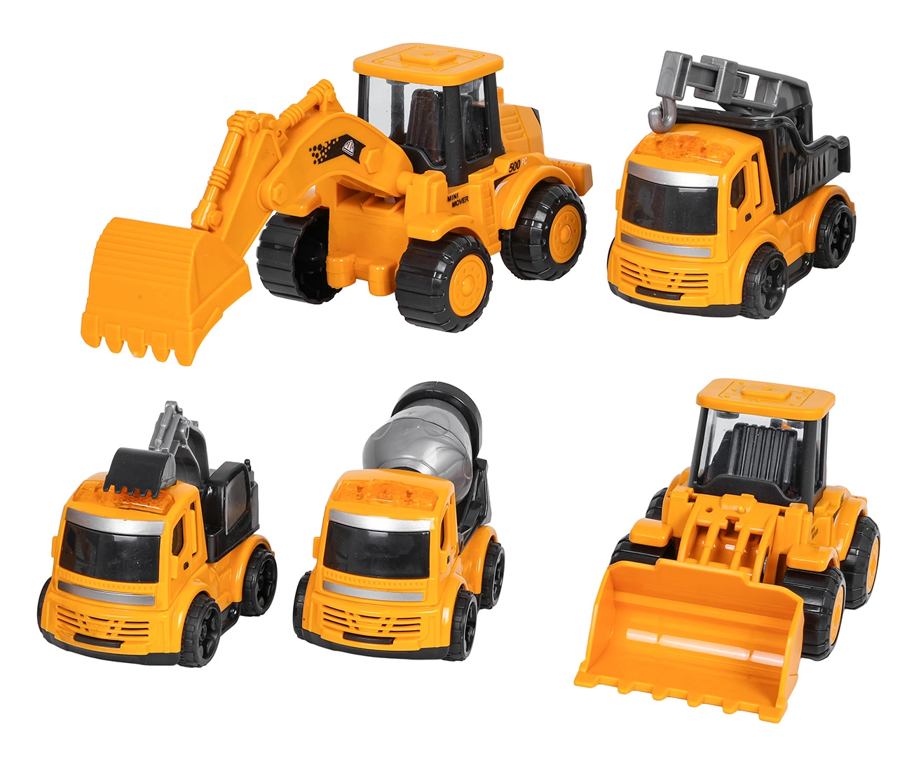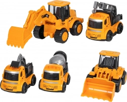 A készlet tartalma: markoló, traktor-markoló, darukocsi, betonkeverő és bulldózer. Minden modell támogatja a kreatív játékot, a kéz–szem koordinációt és a motorikus készségek fejlődését. Kompakt méreteinek köszönhetően könnyen hordozható, és remek ajándék is lehet.
