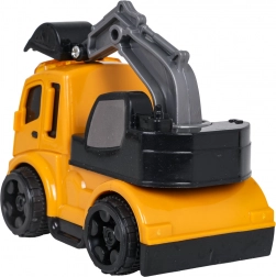 Teljes építőcsapat: markoló, traktor-markoló, darukocsi, betonkeverő és bulldózer. A gyerekek áshatnak, rakodhatnak, emelhetnek és keverhetnek – mindezt egy dobozban.
