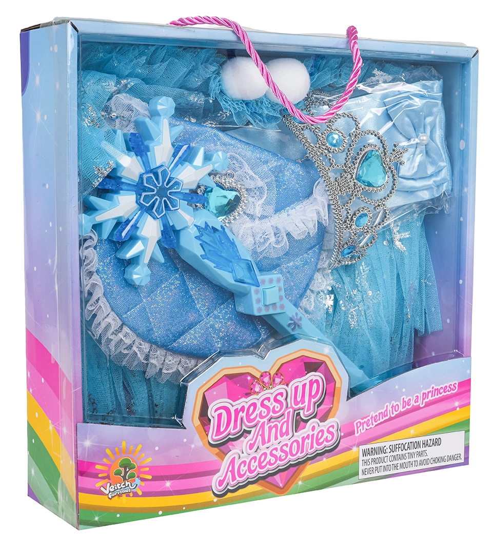 Változtasd kislányodat igazi mesebeli hercegnővé. A jégkék árnyalatú szett könnyű tüllt, csillogó részleteket és összeillő kiegészítőket kombinál. A rugalmas derékrésznek és a puha anyagoknak köszönhetően könnyű felvenni és kényelmes viselni.