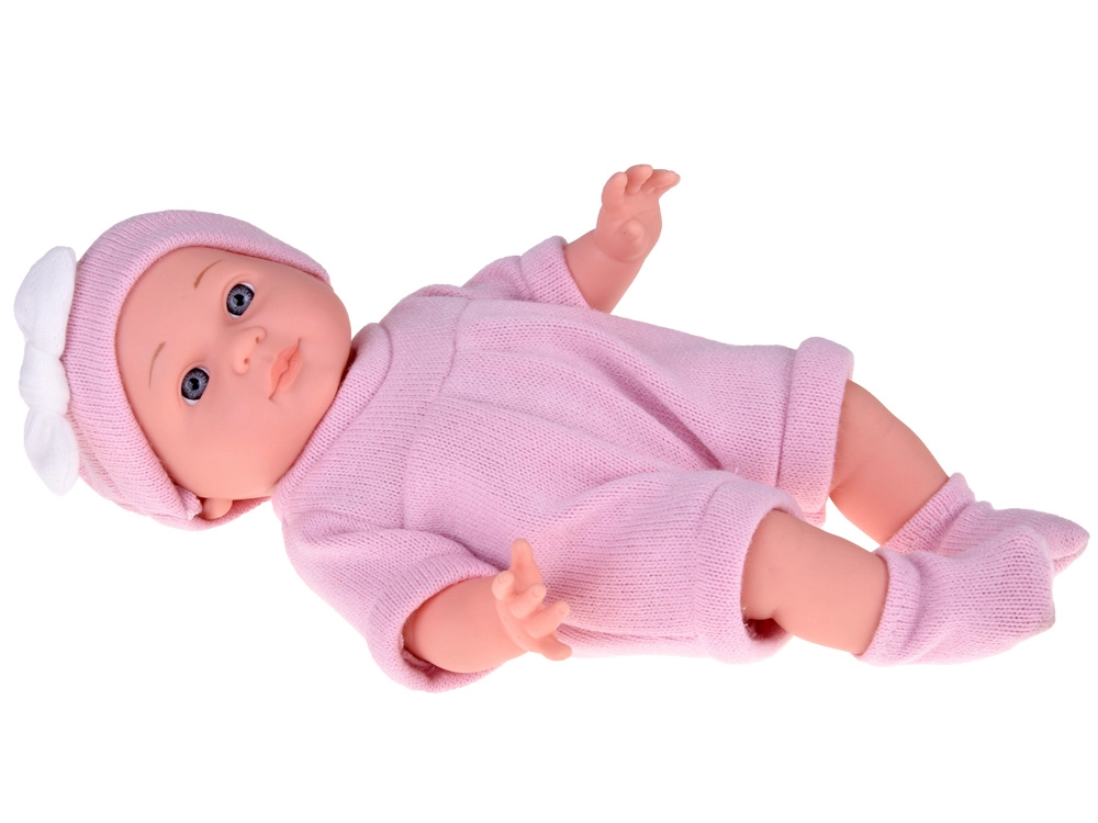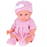 A babának részletgazdag arca van, mozgatható végtagokkal és cuki kis sapkával masnival. A ruhák levehetők és kellemes tapintásúak.