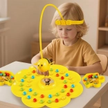 Vedd fel a rugalmas pántot a pálcával, amelyre ráerősíted a mágneses méhecskét, szórd szét a golyókat a virág alakú alapra, és jelre indul a vadászat! A játékosok a méhecskével gyűjtik a golyókat a saját tálkáikba – akár bármilyen színből, akár csak az általuk választott színből. Az nyer, akinek a legtöbb golyója lesz, vagy aki elsőként gyűjti össze a „saját” színeit.
