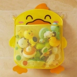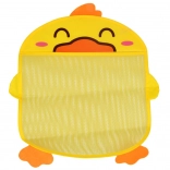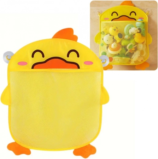 Aranyos, sárga kiskacsa alakú fürdőszobai rendező segít rendet tartani a kádban és a zuhanyban. Tágas első hálózsebe elférnek a fürdőjátékok és apró kellékek, gyorsan megszáradnak, és megelőzhető a penészedés. A 2 tapadókorongnak köszönhetően könnyen rögzíthető sima csempére vagy üvegre. Remek kiegészítő a fürdőszobába és a gyerekszobába.