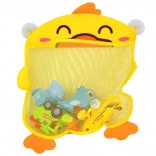 Vége a szétszórt játékoknak fürdés után. A vidám kiskacsa széles, hálós zsebe mindent egy helyen tart, és a légáteresztő hálónak köszönhetően a játékok gyorsan megszáradnak. A mellékelt tapadókorongokkal a sima felületre történő felszerelés pillanatok műve.