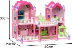 A Woopie Kerti villa babaház mesés hangulatot és végtelen játéklehetőségeket nyújt. Két szint, hat átgondolt helyiség, terasz és dekoratív elemek alkotják a bájos „kastélyt”, amely a világító tornyoknak köszönhetően szó szerint ragyog. A rózsaszín, lila és mentol pasztell kombinációja barátságos környezetet teremt az önálló és közös játékhoz.