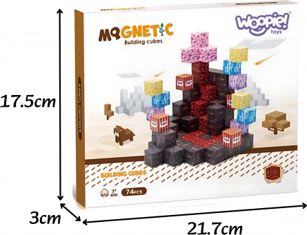 A WOOPIE mágneses kockák egyszerre nyújtanak szórakozást és tanulást. A beépített mágneseknek köszönhetően az elemek gyorsan és stabilan kapcsolódnak, ugyanakkor könnyen szétválaszthatók, így felesleges frusztráció nélkül támogatják a motorikus készségek fejlődését. A Minecraft világából inspirált színes minták arra ösztönzik a gyerekeket, hogy saját világokat, díszleteket és szereplőket hozzanak létre.