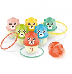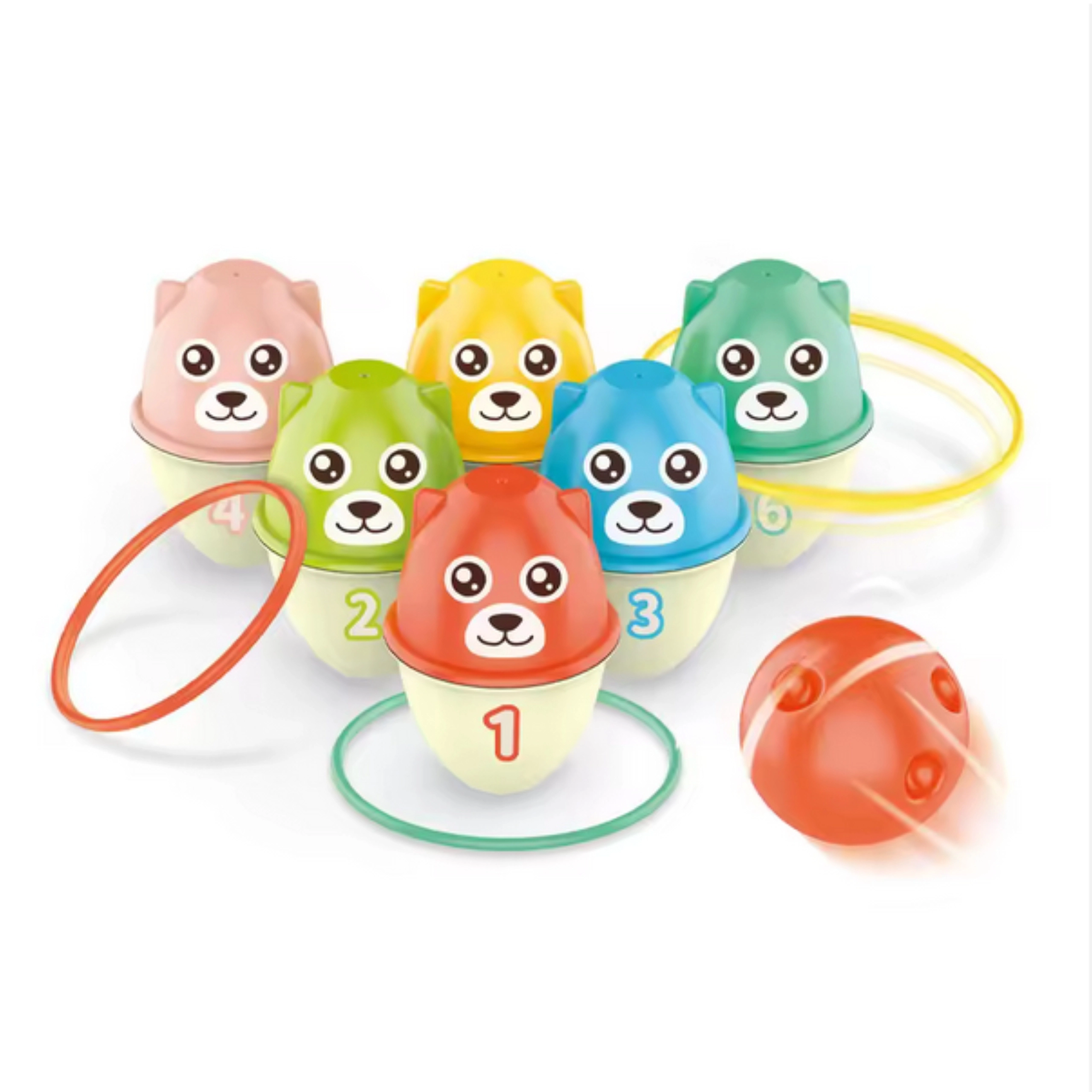 - 3 az 1-ben: teke, karikák, toronyépítés