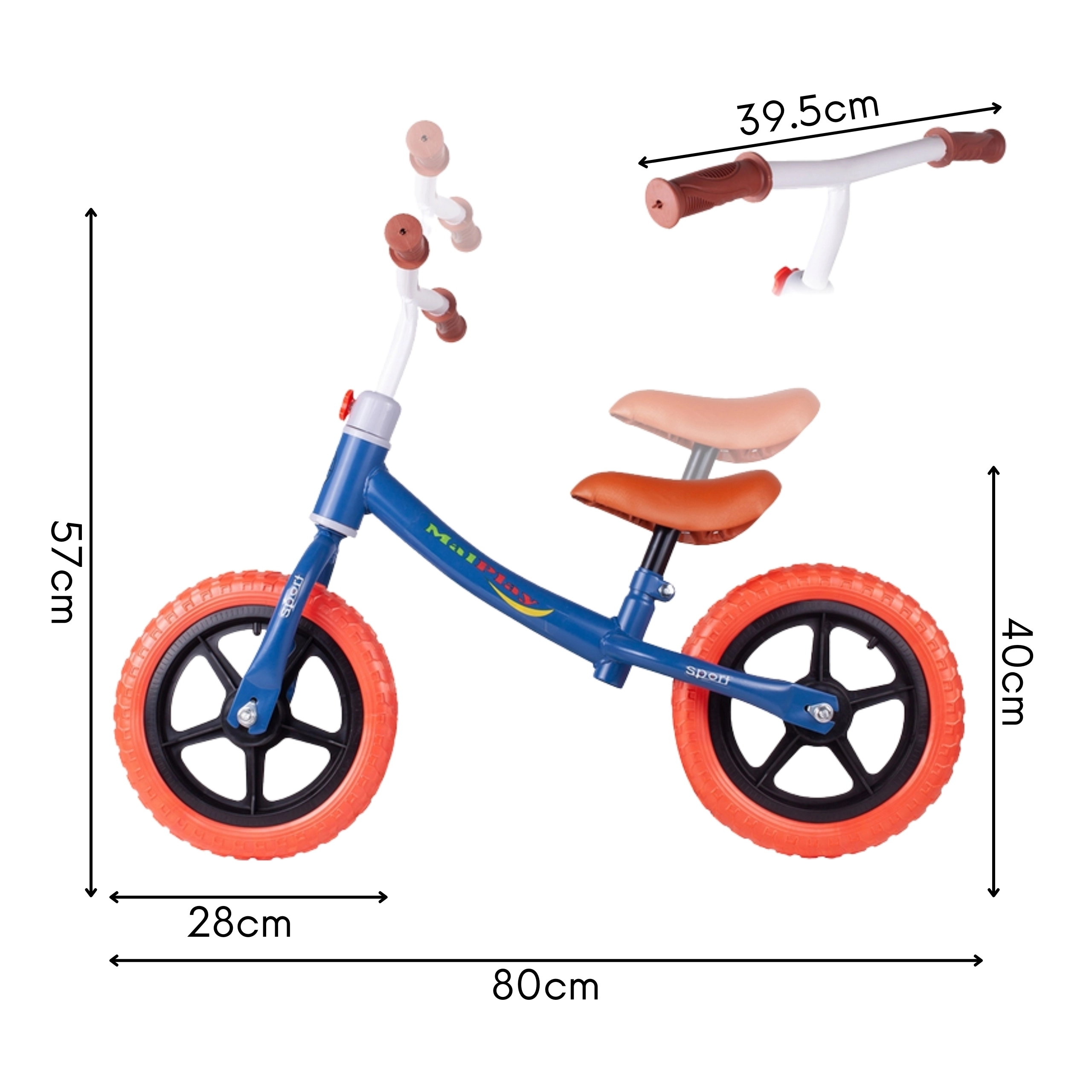 12″-os, karbantartást nem igénylő EVA kerekek nem igényelnek fújást, és csendes, kényelmes gurulást nyújtanak. Az ergonomikusan formált, puha nyereg és a csúszásgátló markolatok kényelmet és biztos fogást adnak hosszabb kirándulások során is. A termék megfelel az európai CE és EN71 biztonsági szabványoknak, így megbízható minőségre számíthat.