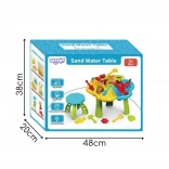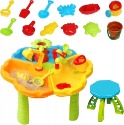 A 2 az 1-ben vízhez és homokhoz tervezett játékasztal ideális kertbe, erkélyre, teraszra és gyerekszobába is. A háromrészes tálcák lehetővé teszik a vízzel, homokkal és kiegészítőkkel való egyidejű kísérletezést, így a gyerekek építhetnek, önthetnek, szitálhatnak és felfedezhetnek különböző textúrákat. Az ergonomikus szék játék közben kényelmet és stabilitást biztosít.