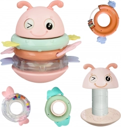 Olyan baba játékot keres, amely leköti a figyelmet, megnyugtatja az ínyt és közben támogatja a fejlődést? Ez a rózsaszín WOOPIE méhecske multifunkciós érzékszervi játék, amely már az első hónapoktól alkalmas. A karikák külön is használhatók rágókaként és csörgőként, vagy a pálcára helyezve a játék dalt játszik le vagy mókás hangot ad ki. A stabil, lekerekített talp finoman ring és arra ösztönzi a gyermeket, hogy újra és újra felfedezze.