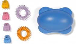 - 7 kiegészítő a csomagban: kefe, 2 hajgumi, 4 csat.