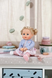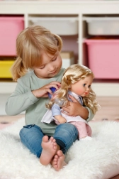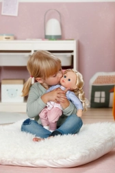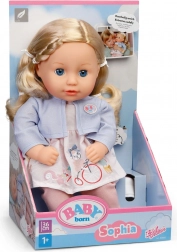 Ismerkedj meg Sophiával – gyengéd társsal a mindennapi játékhoz. A BABY born Sophia rózsaszín öltözetben elbűvöl puha, ölelni való testével, valósághű, pislogó szemeivel és dús, minőségi hajával, amely kifejezetten fésülésre és frizurakészítésre hívogat.