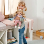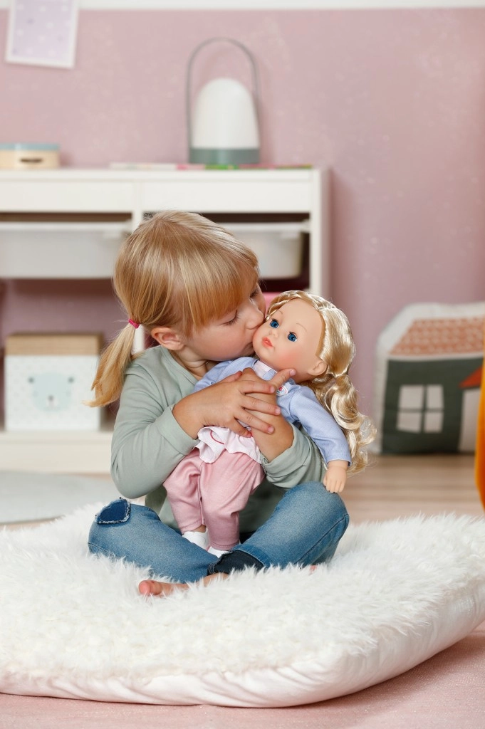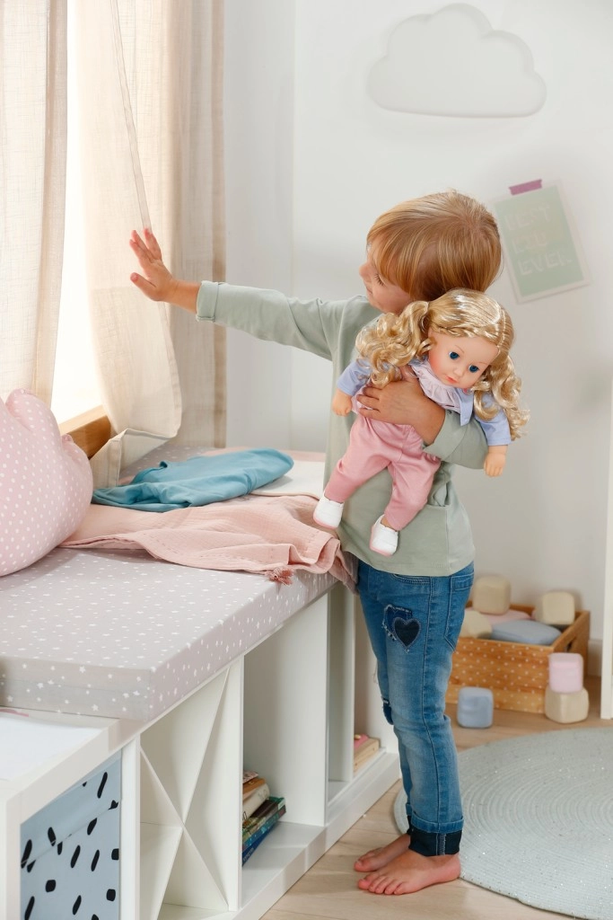 A csomag teljes öltözéket tartalmaz: finom ruha könnyű kabátkával, kényelmes leggings és cipő. A mozgatható végtagoknak köszönhetően a baba könnyen ültethető és öltöztethető. A babázás fejleszti a finommotorikát, az empátiát és a képzelőerőt – ideális választás első babának a legkisebbeknek.