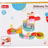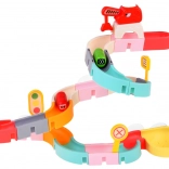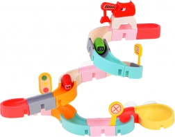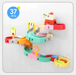 Ez a kreatív fürdőkészlet színes elemeivel, közlekedési témájával és vizes effektjeivel ragadja magával a gyerekeket. A 37 komponensből kanyargó vályúkat és lejtőket építhettek, amelyeken a kapszulaautók a víz segítségével úsznak és gördülnek. A szilikon tapadókorongok erősen tartják az elemeket a sima felületeken, a szűrős lezárás pedig látványos vízpermetet hoz létre.