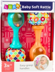 A legkisebbeknek szánt szett támogatja a baba természetes fejlődését. Ergonomikus formájú a könnyű megfogáshoz, könnyű kivitelű a kis kezekhez, és puha textil véggel rendelkezik, amely serkenti a látást és a tapintást. Intenzív színek, kontrasztos minták és a golyók finom csörgése ösztönzi a gyermeket a felfedezésre és a játékra.