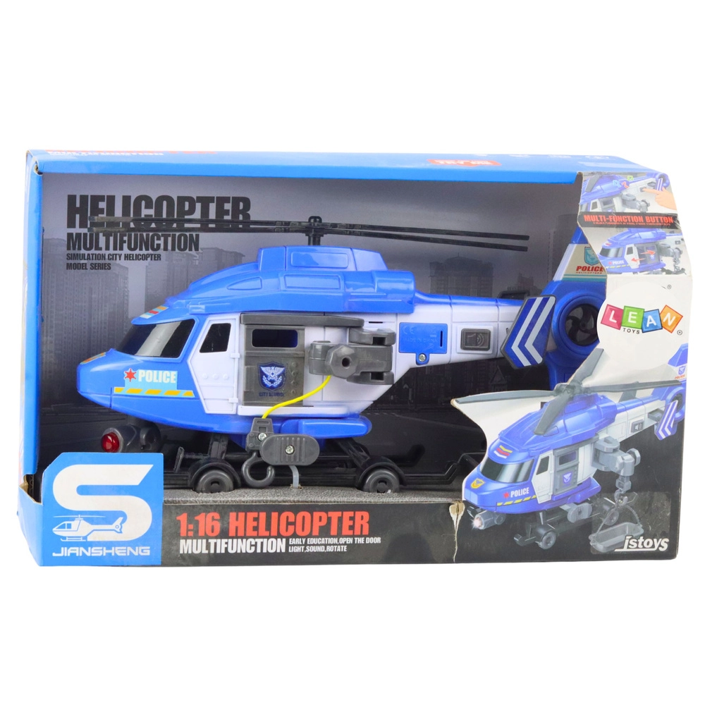 Ez a részletgazdagon kidolgozott, kék színű rendőrségi helikopter rengeteg szórakozást és valósághű funkciót kínál a gyerekeknek. A gombok megnyomására fény- és hangeffektek aktiválódnak, a fő- és farokrotor forgása fokozza az autentikus élményt, a kerekek pedig lehetővé teszik a padlón való mozgást.