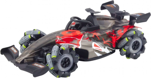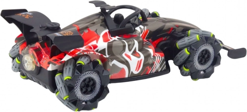 A speciális kerékkialakítás lehetővé teszi a minden irányú mozgást és a 360°-os fordulatokat, így dinamikus trükköket és precíz manővereket is könnyedén kivitelezel. A LED fények különleges hangulatot adnak, főleg szürkületben. Az autót 3,7 V-os Li-ion akkumulátor (tartozék) táplálja, a töltés USB-n keresztül történik. A távirányító 2× AA elemet igényel (nem tartozék).