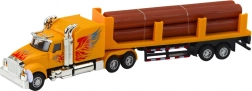 Ez a részletgazdag fém teherautó szerelvény utánfutóval valóságos élményt nyújt a közlekedés és a logisztika világából. Elég a járművet hátrahúzni, és a felhúzós meghajtásnak köszönhetően magától előreindul. Az LED fények és hangok fokozzák az igazi vezetés hangulatát.
