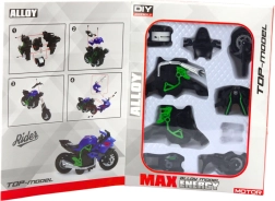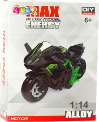 1:14 méretarányú fém motorkerékpár építőkészlet örömet szerez a kis mérnököknek és a motorsport rajongóinak egyaránt. A zöld‑fekete kombinációban készült, valósághű alkatrészek összeállítás után látványos modellt alkotnak. Az építés fejleszti a finommotorikát, a logikus gondolkodást, a koncentrációt, és örömöt ad a saját kezűleg létrehozott alkotásból.