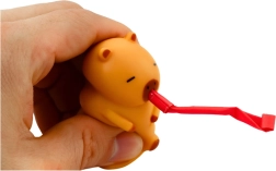 A piros trombitás barna kapibara kellemesen puha és elasztikus anyagból készült, amely kiválóan nyomkodható és segíti a relaxációt. Megnyomáskor sípoló hang aktiválódik, és a szájból kibújik a trombita, így a játék egyszerre kiváló antistressz kiegészítő és eredeti csoportos szórakozás.