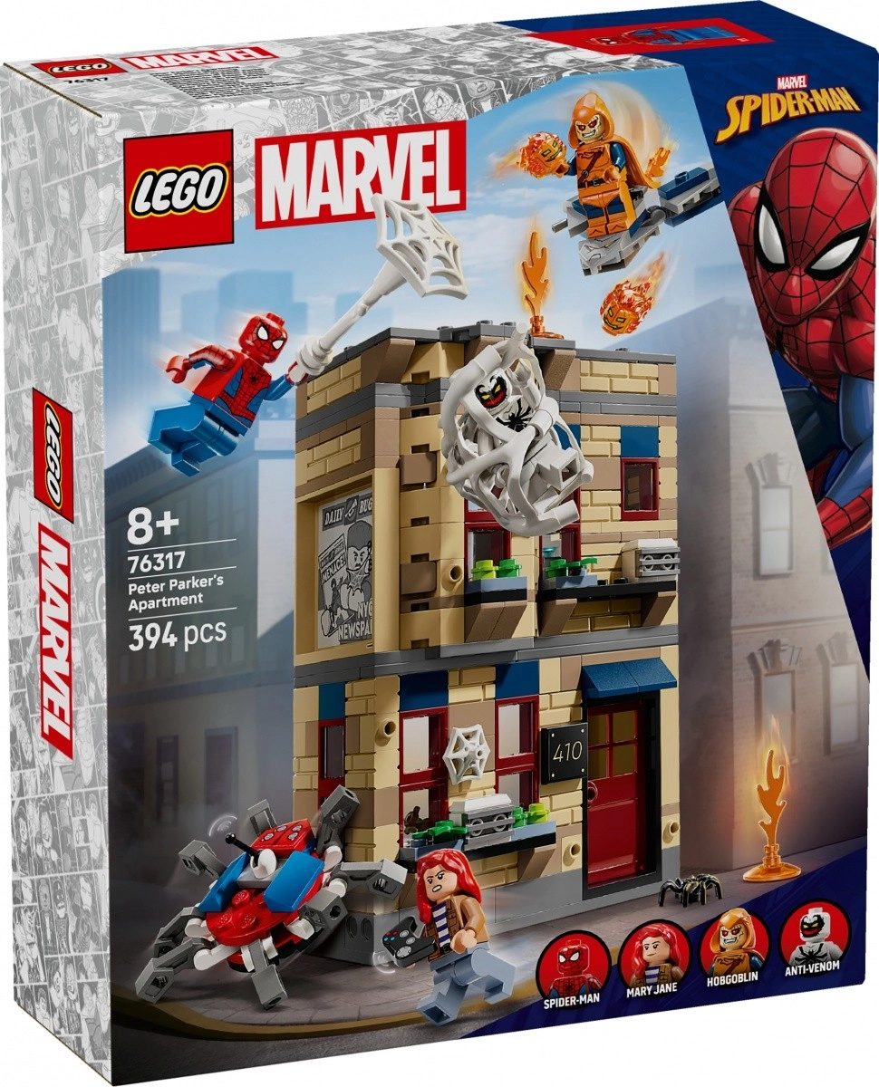 Ez a gyűjtői LEGO Marvel készlet remek akciót hoz közvetlenül Parker lakásába. Belül a földszinten konyha, felül dolgozószoba és háló található kihúzható ággyal, íróasztallal, számítógéppel, fényképezőgéppel és mikroszkóppal. Nem hiányzik a gombnyomásra összeomló fal funkció és a nagy, hajlékony háló sem, amelyre minifigurák rögzíthetők.