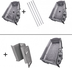 Az ágy pillanatok alatt összecsukható. A csomag része egy kompakt, cipzáras, fogantyús hordtáska, amely védi az ágyat a hordozás során.