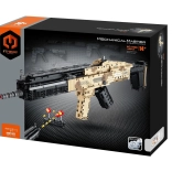Ez a nagy terjedelmű építőkészlet minden műszaki modellek iránt rajongót lenyűgöz. A taktikai fegyverek által inspirált valósághű automata puska részletes felépítéssel és autentikus elemekkel rendelkezik, mint például a tár, a cső és a tus. Az átgondolt mechanikának köszönhetően élvezheti a mozgó alkatrészeket és a lövés-szimulációt biztonságos projektilokkal.