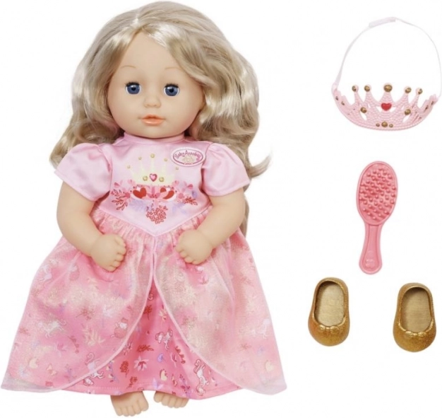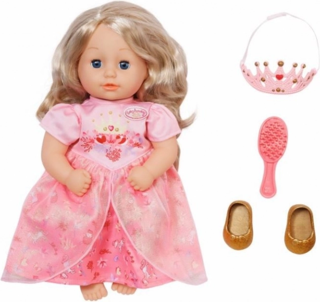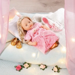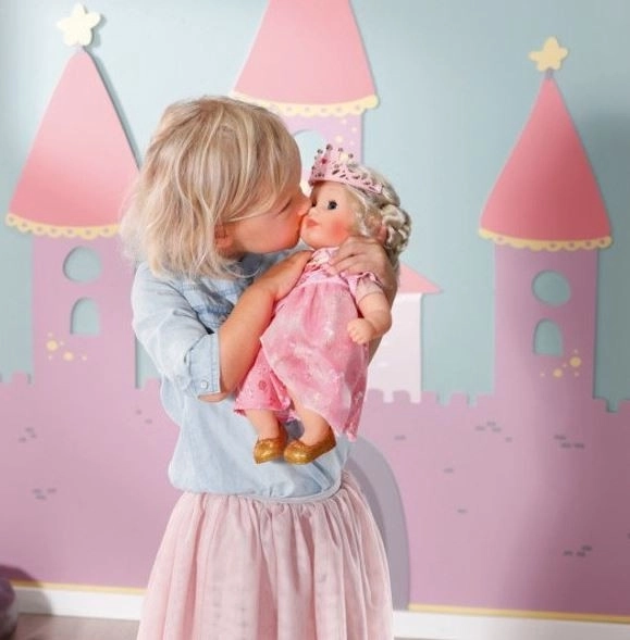 A rózsaszín ruhája alatt tüll fodros arany balerina cipő ragyog, amely teljessé teszi királyi megjelenését. Az „easy fit” szabású könnyen hozzáférhető ruháknak köszönhetően az átöltöztetés játék a legkisebb kezek számára is. A baba fejleszti a gyermekek kreativitását és felelősségtudatát már egyéves kortól.