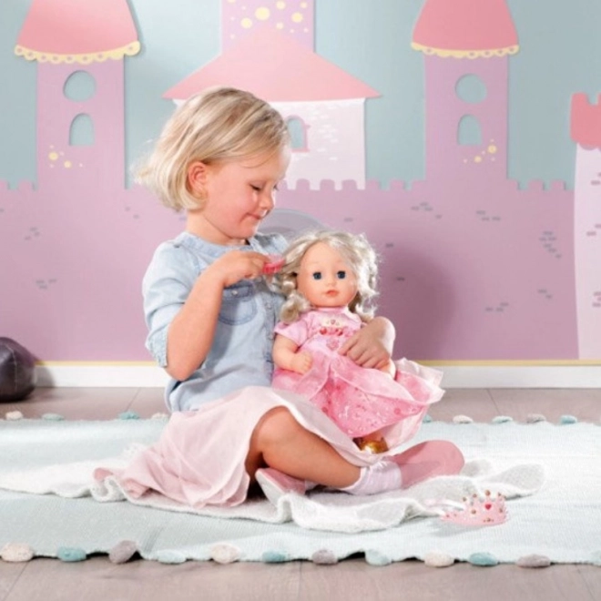 A Baby Annabell Kis Édes Hercegnő baba kifejezetten olyan kis hercegnőknek készült, akiknek gazdag a fantáziájuk. Amikor megcsókolod, csókhangokkal válaszol, és arca kipirosodik. Zárja be ragyogó kék szemeit is mindeközben. Minőségi hajjal és saját hajkeféjével gyönyörű frizurákat lehet készíteni. Ennek a babának a puha teste ideális a bújáshoz és a pihenéshez egy hosszú, játékokkal teli nap után.