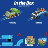 Chase és Rocky kisautóival a gyerekek színes körpályán száguldanak forgó propellerekkel és PAW Patrol témával a még nagyobb szórakozásért.