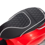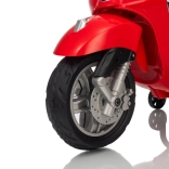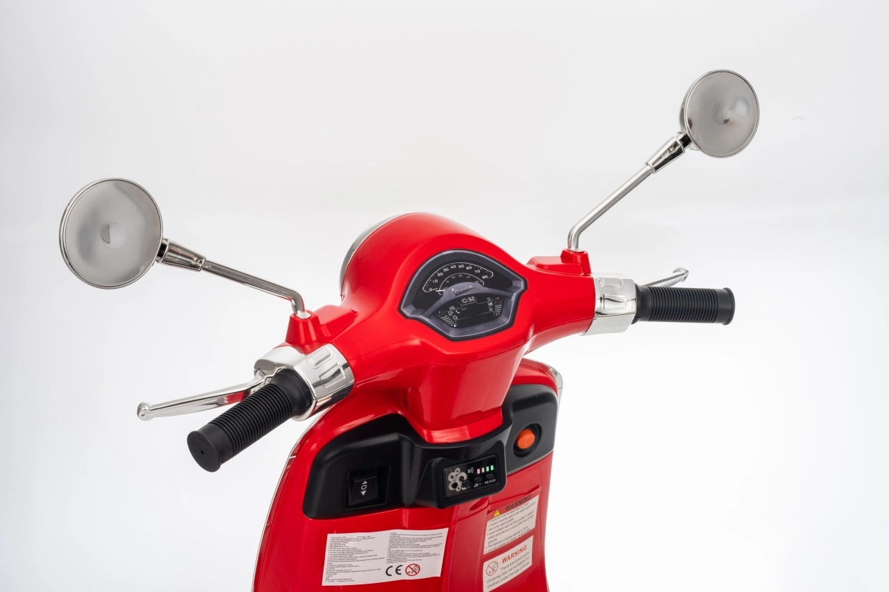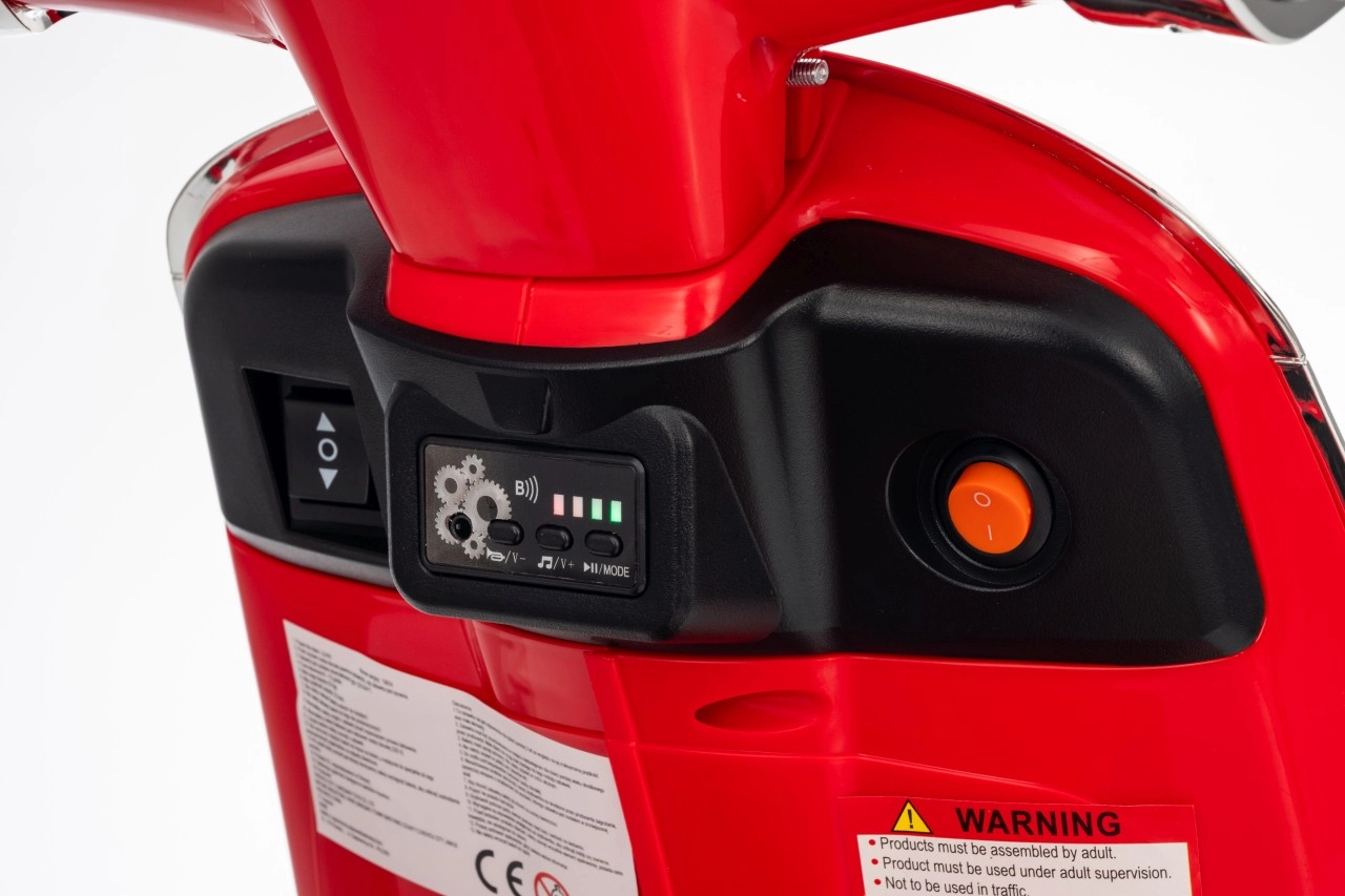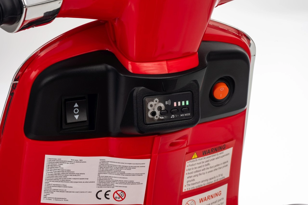Stílusos gyerek elektromos robogó VESPA stílusban, amely valósághű megjelenésével, kényelmes ökobőr ülésével és stabil menetével (kisegítő kerekeknek köszönhetően) örömet szerez a kicsi motorosoknak. 2×35 W motorral, 12 V 7 Ah akkumulátorral, elöl-hátul LED világítással, valamint gazdag audio funkciókkal (MP3, Bluetooth, AUX) és akkumulátor-töltöttség jelzővel rendelkezik.