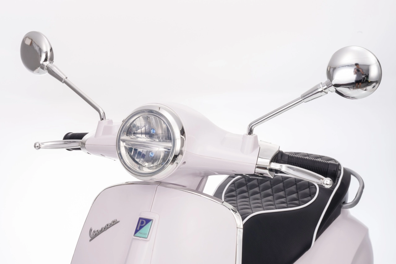 A külön kapcsolóval működő első és hátsó LED világítás, valamint a VESPA ihlette dizájn stílust és biztonságot ad a vezetésnek.
