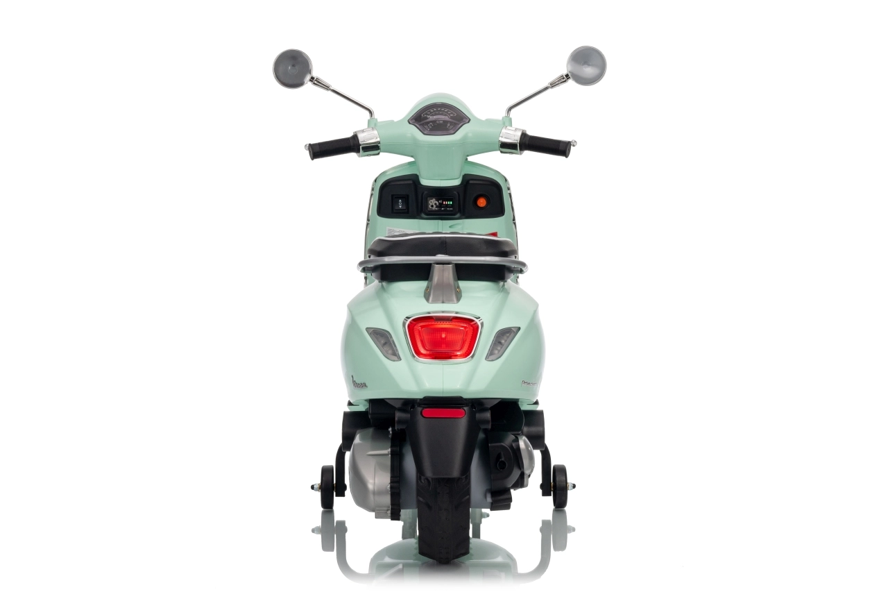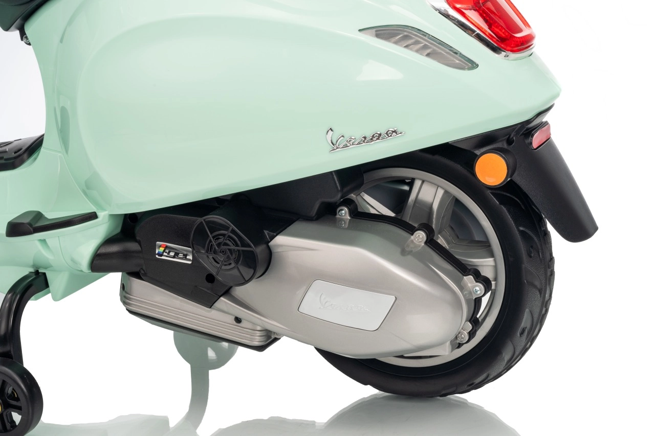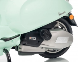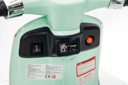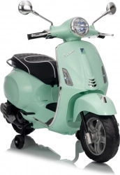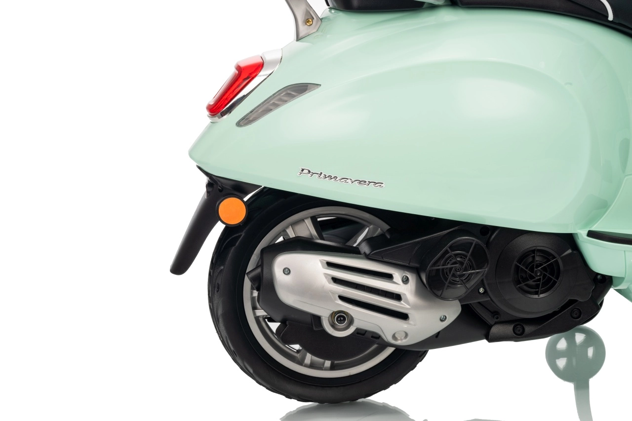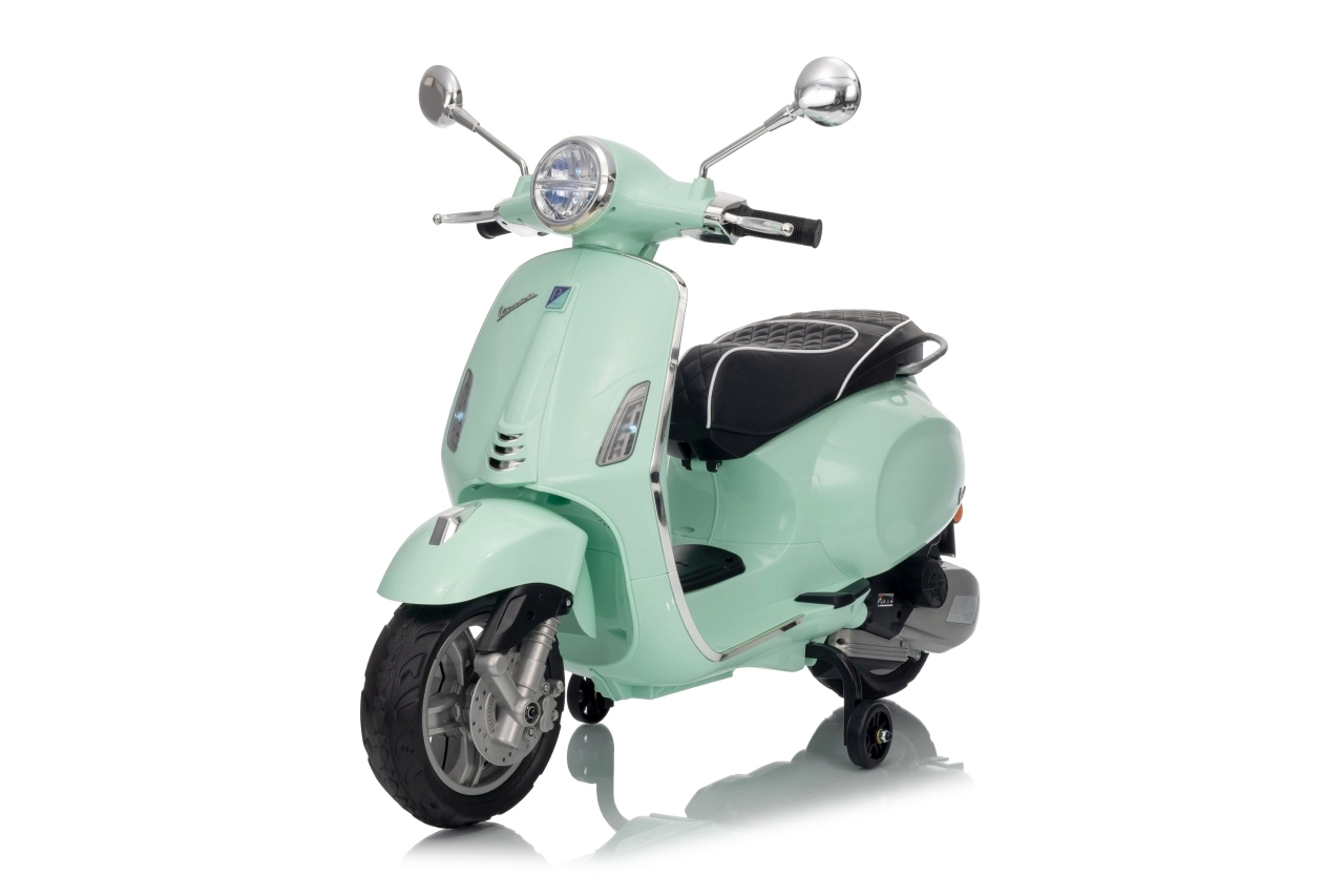 Stílusos gyerek elektromos roller, a VESPA Roma mentazöld színben, valósághű dizájnnal, két motorral 2×35 W, erős 12 V 7 Ah akkumulátorral és stabilizáló kerekekkel a biztonságos közlekedésért. A kényelmet a ökobőr ülés, csendes EVA kerekek és elöl-hátul LED lámpák biztosítják. Nem hiányzik a Bluetooth/MP3/AUX, kormányon elhelyezett hangok és duda, valamint a töltöttségjelző sem.