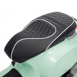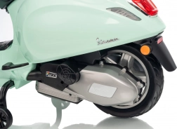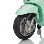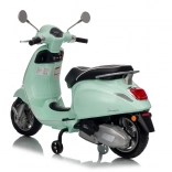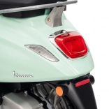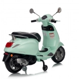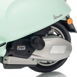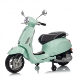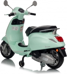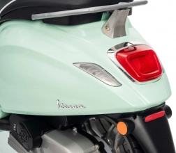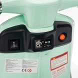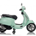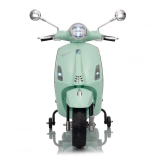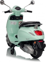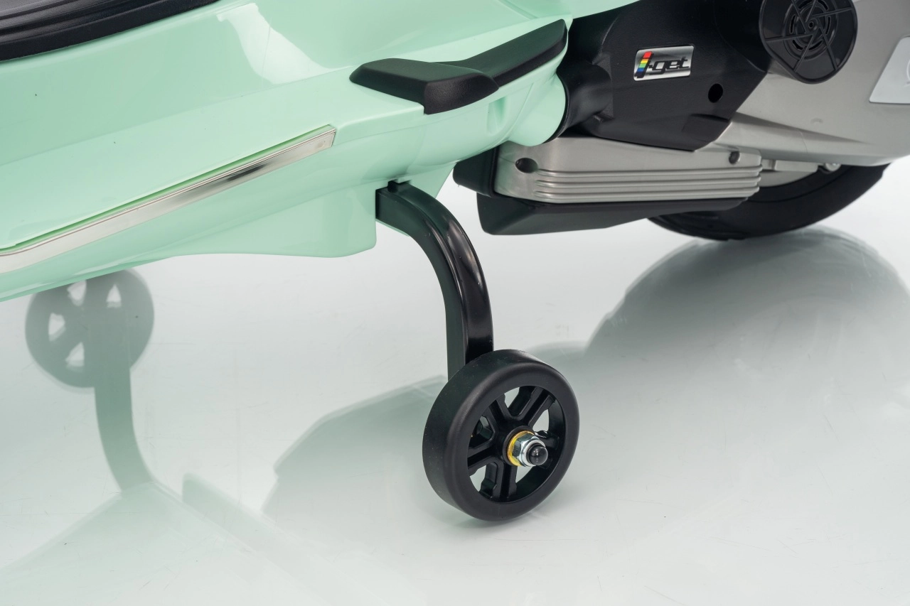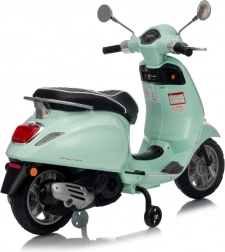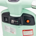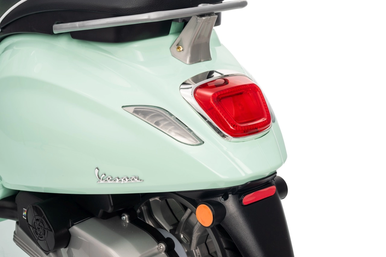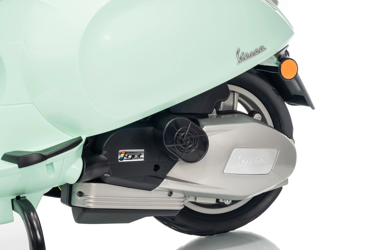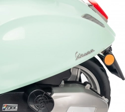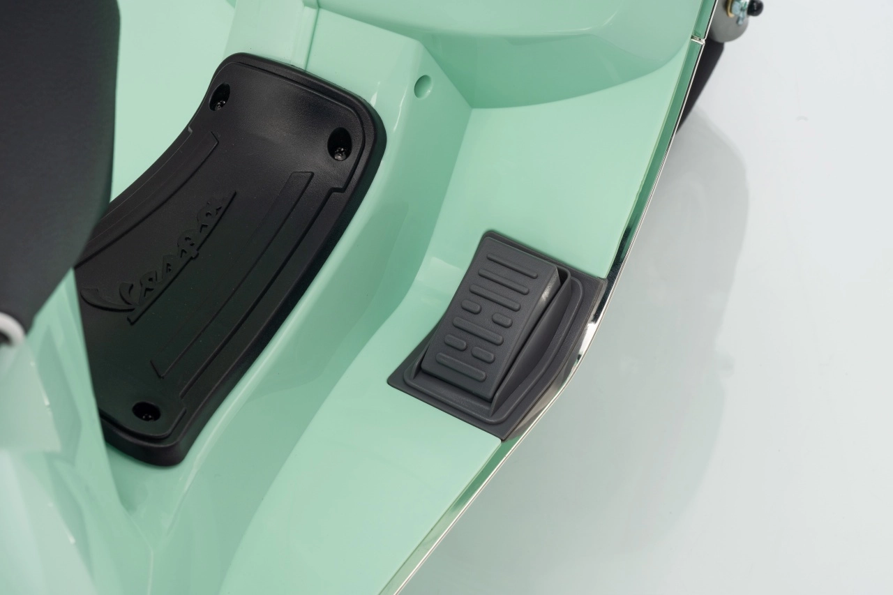Stílusos gyerek elektromos roller, a VESPA Roma mentazöld színben, valósághű dizájnnal, két motorral 2×35 W, erős 12 V 7 Ah akkumulátorral és stabilizáló kerekekkel a biztonságos közlekedésért. A kényelmet a ökobőr ülés, csendes EVA kerekek és elöl-hátul LED lámpák biztosítják. Nem hiányzik a Bluetooth/MP3/AUX, kormányon elhelyezett hangok és duda, valamint a töltöttségjelző sem.
