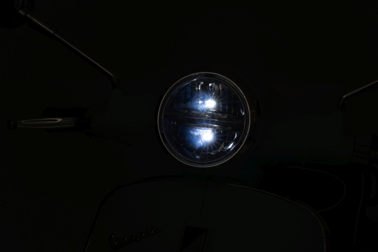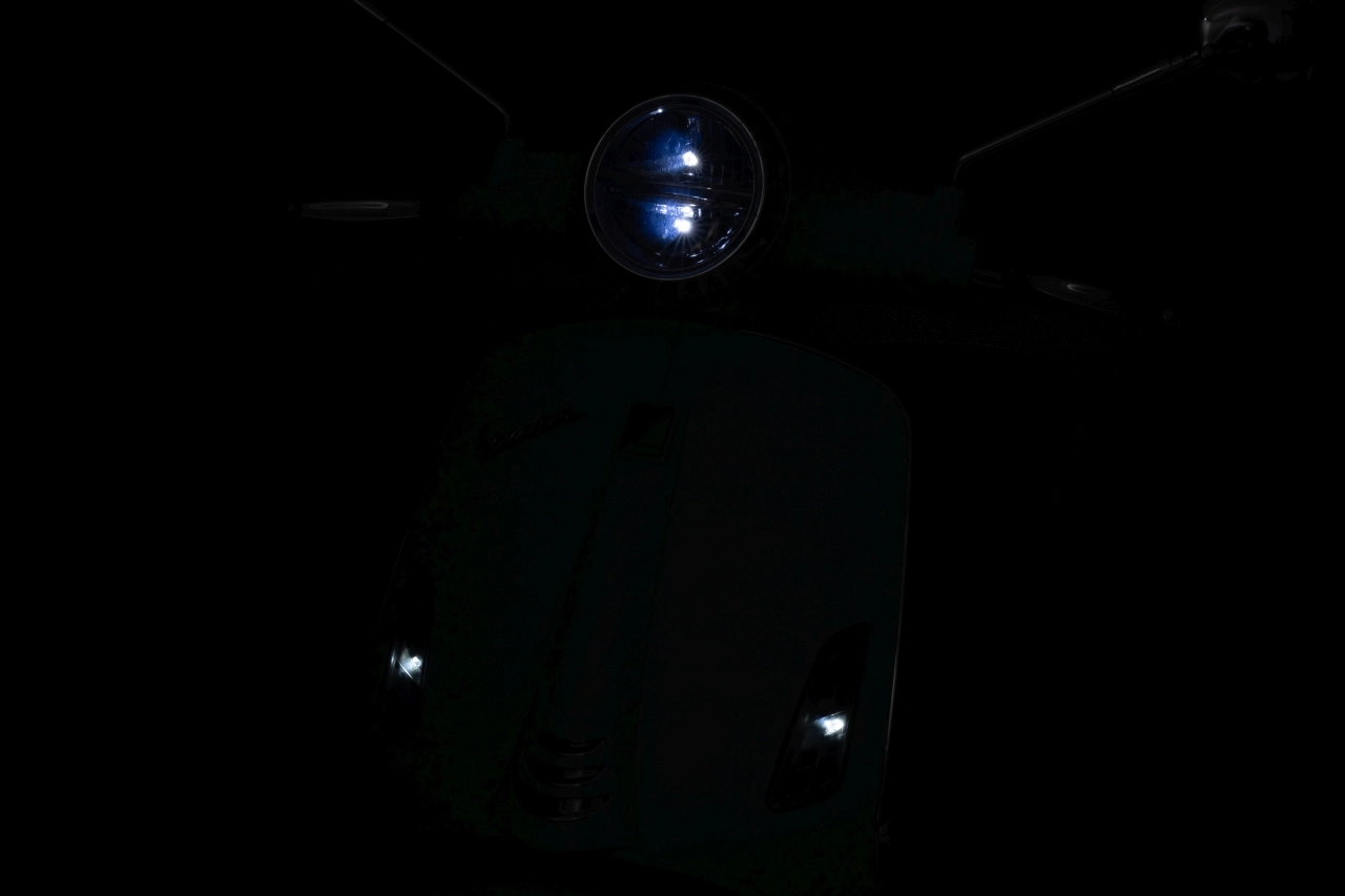 Az integrált LED világítás növeli a láthatóságot, és autentikus, igazi VESPA-hangulatot kölcsönöz a rollernek.