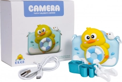 A bájos, kiskacsás mintájú gyerek fényképezőgép szórakozást és kreativitást hoz a kicsiknek. Képek és videók készítésére képes, van 1080p kamerája, színes LCD kijelzője, szórakoztató filterei és keretei, valamint a memóriában 5 játék. Tartozék a védő gumiborítás, nyakpánt és USB töltőkábel. A beépített 5 V / 1000 mAh-s akkumulátor rengeteg fotó- és videóélményt biztosít.