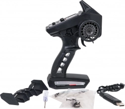 A 2,4 GHz-es vezérlés megbízható, zavarásmentes hatótávot biztosít, az autó minden irányban egyenletesen mozog, és a nagy, magas tapadású gumigumiknak köszönhetően a gyors szakaszokon is tartja az ívet. A tápellátást a csomagban található 7,4 V 1300 mAh Li‑ion akkumulátor biztosítja, a távirányítóhoz 3× AA 1,5 V szükséges (nem tartozék).
