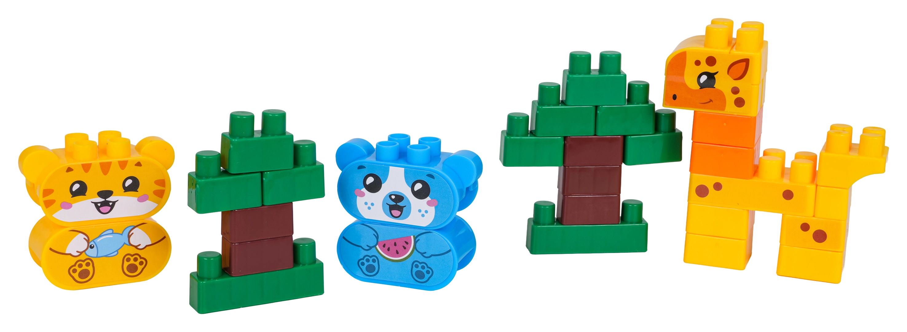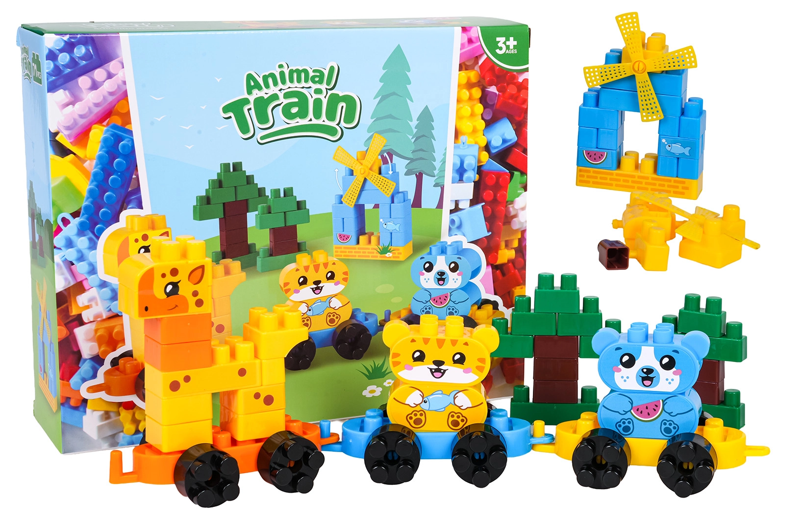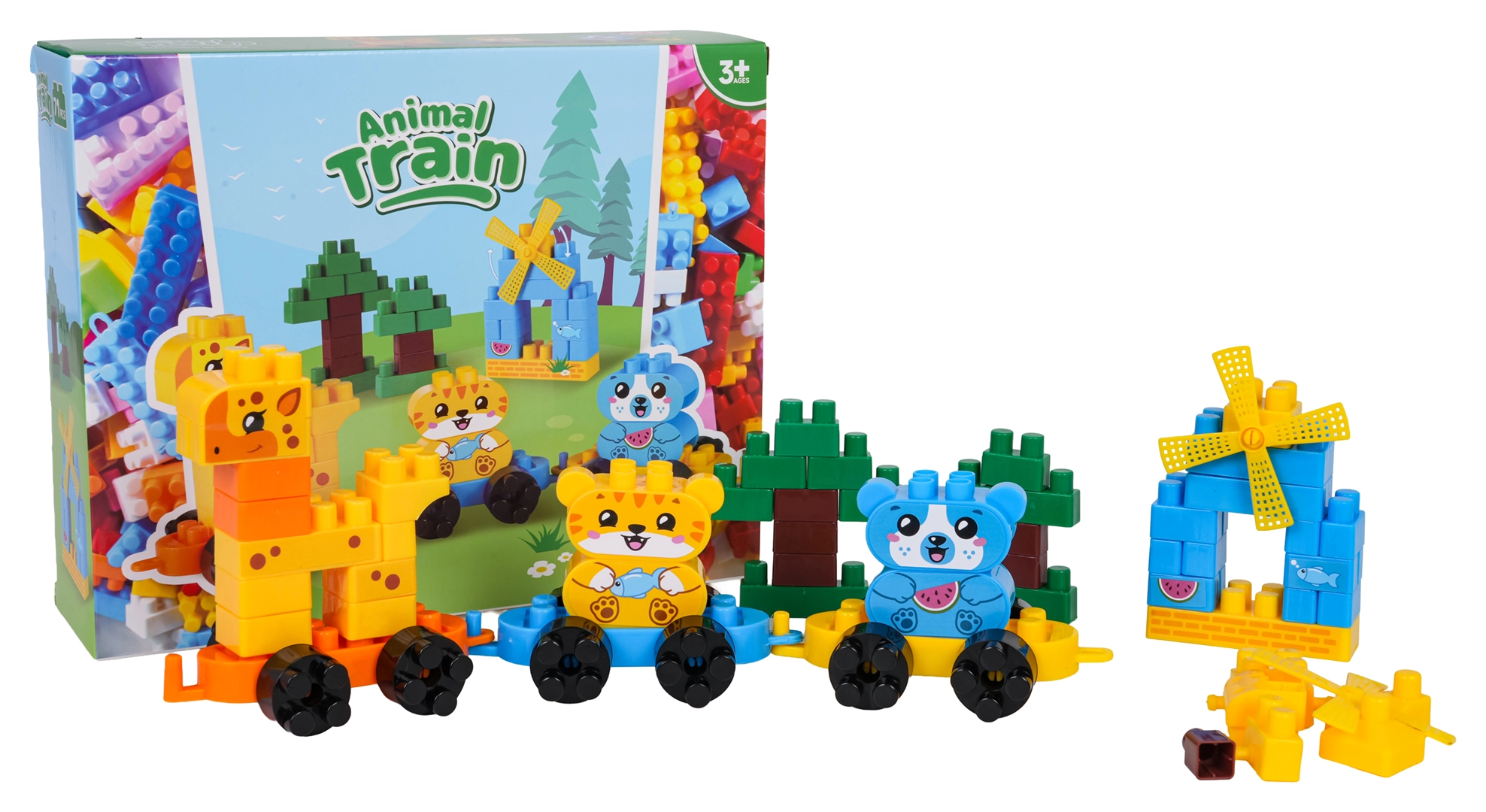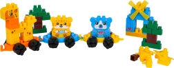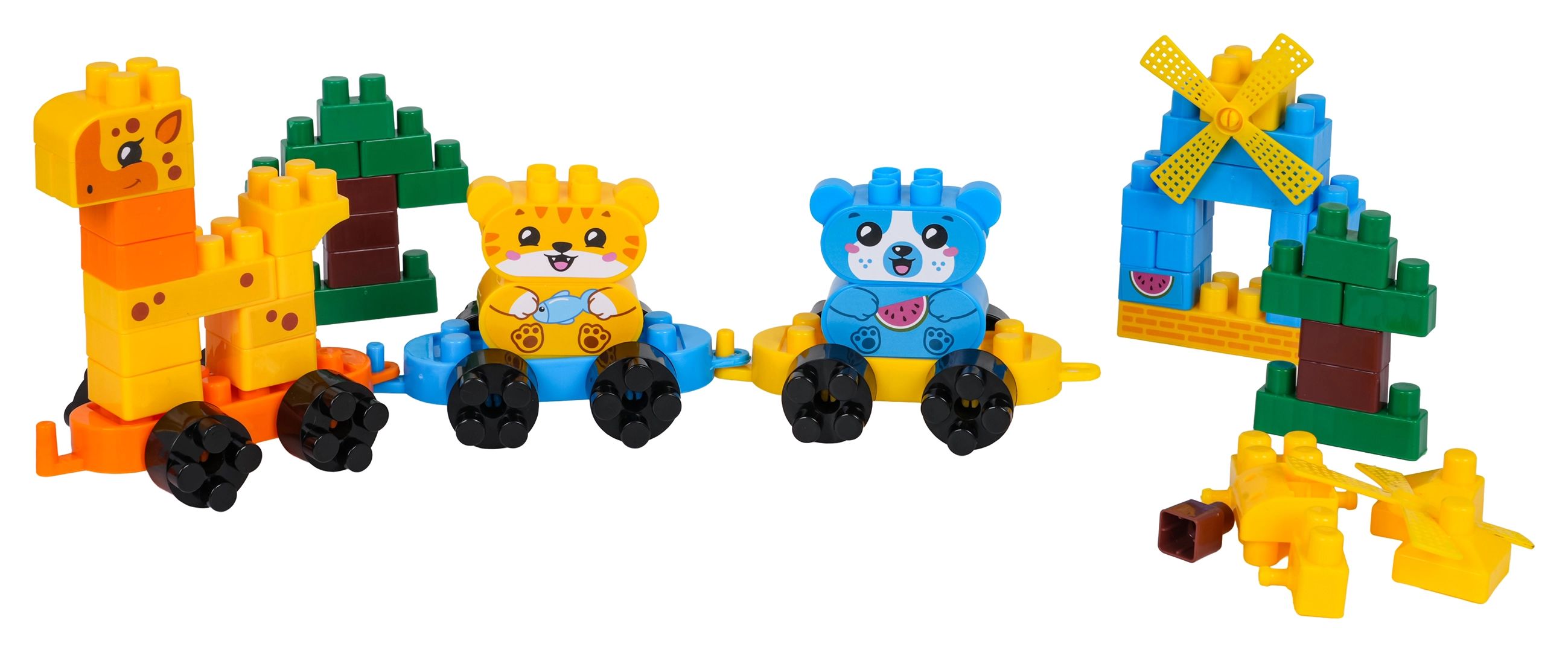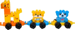 Rakd össze a zsiráfot, a tigrist és a macit guruló alvázakra, majd kapcsolt össze őket színes vonattá a még több mókáért.