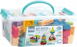 A WOOPIE Soft Blocks készlet örömteli alkotást és tanulást kínál a gyerekeknek. A nagy, puha és biztonságos elemek pasztell színekben kellemes tapintásúak, és ideálisak az első építkezésekhez. A gyerekek könnyedén építhetnek építményeket, járműveket és fantáziamodelleket, miközben fejlődik a koordinációjuk, a türelmük és az együttműködésük.
