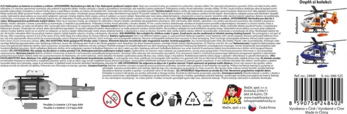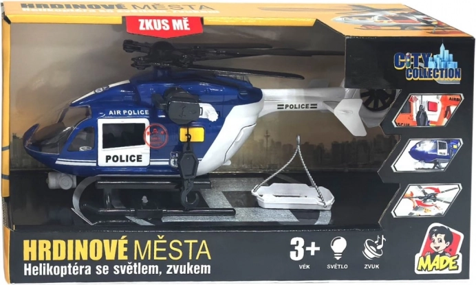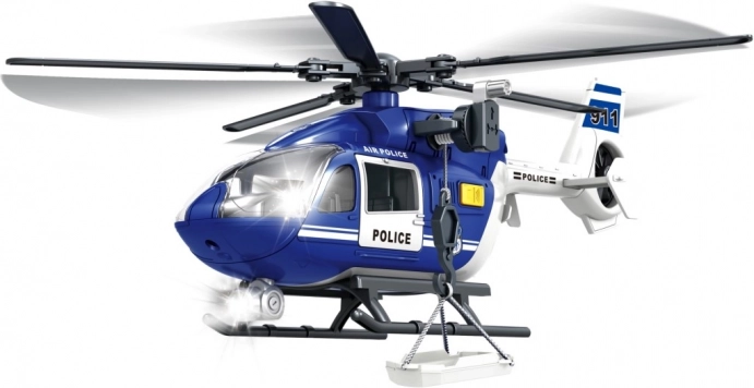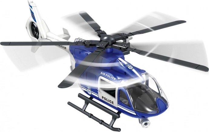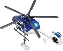 Átlátszó borítású pilótafülke, futósínek és jellegzetes rendőrségi jelölések. A minőségi műanyag az intenzív gyermeki játékot is bírja.