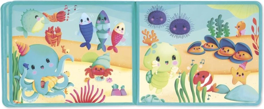 Színes illusztrációk tengeri barátokkal, amelyek nézegetésre és mesélésre csábítanak. A könyv vízben is biztonságos, kellemes tapintású és könnyen tartható.