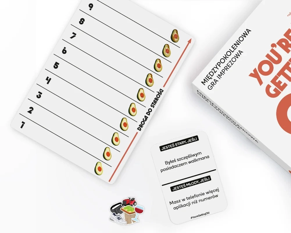 A „You’re Getting Old” egy friss, ötletes kártyajáték, amely minden baráti estét nevetéscunamivá változtat. Húzzatok kártyákat „mi számít fiatalosnak” és „mi már oldschool” állításokkal, és saját reakcióitok alapján lépjetek előre vagy hátra a táblán. Az nyer, aki nem sodródik a cél felé, és a lehető legközelebb marad a starthoz.