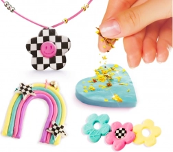 Kísérletezz látványos felületi hatásokkal, kombinálj színeket és mintákat, és alkoss a stílusodhoz illő gyűrű-, karkötő- és medálkollekciót. A készlet fejleszti a kreatív gondolkodást, a türelemet és a finommotorikát.