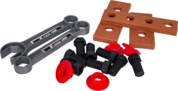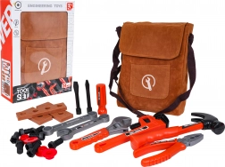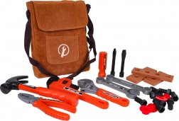 A csomagban mindent megtalál: kalapács, fogó, csőfogó, állítható kulcs, csavarhúzó cserélhető bitekkel, csavarok, anyák és „fa” lécek gyakorláshoz. Az elemek kis gyerekkezekhez készültek, különös tekintettel a kényelmes fogásra és a biztonságos használatra.
